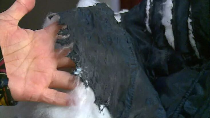 羽绒衣被炸出好几个“大窟窿”